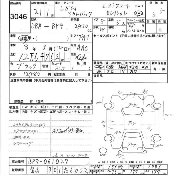 SUBARU OUTBACK - лот 3046