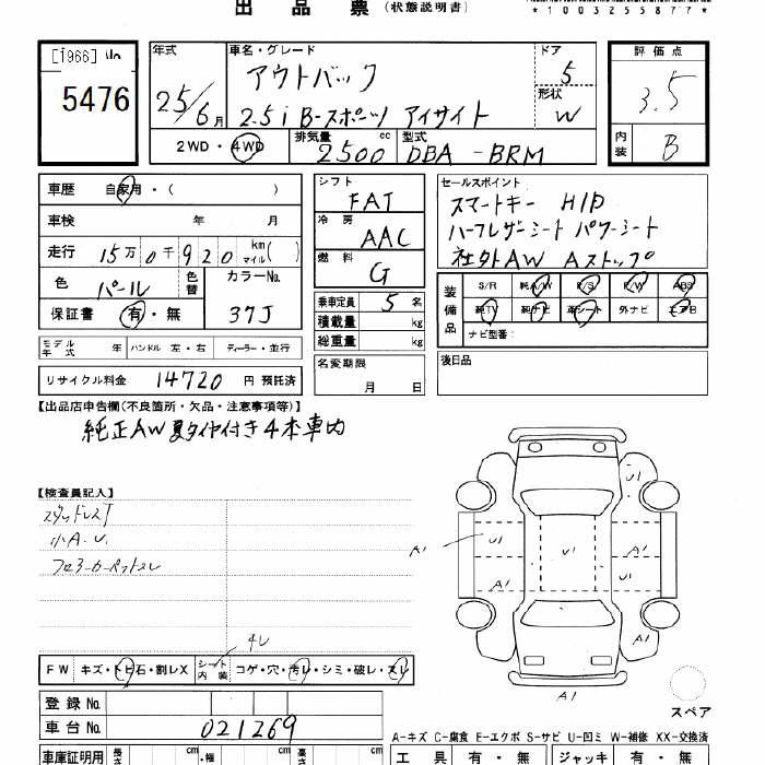SUBARU OUTBACK - лот 5476