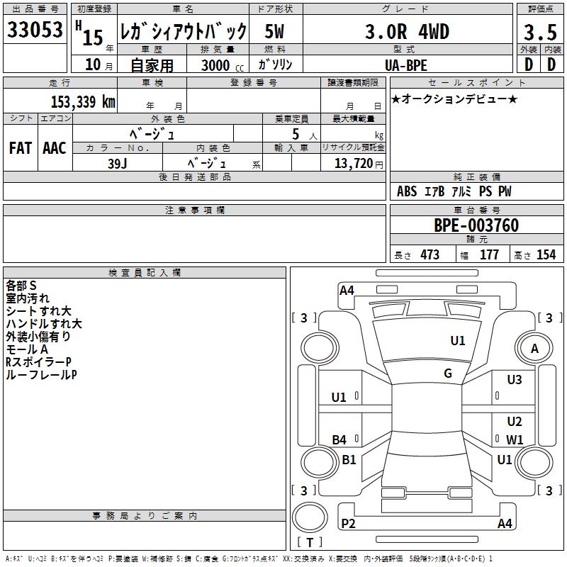 SUBARU OUTBACK - лот 33053