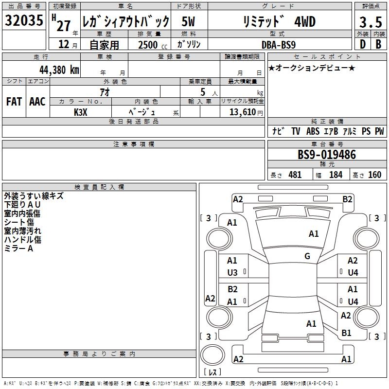 SUBARU OUTBACK - лот 32035