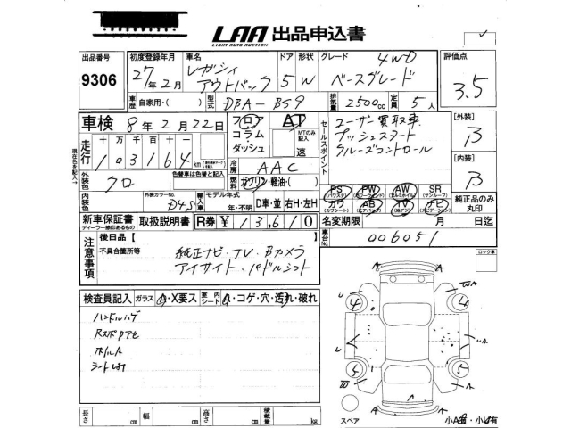 SUBARU OUTBACK - лот 9306