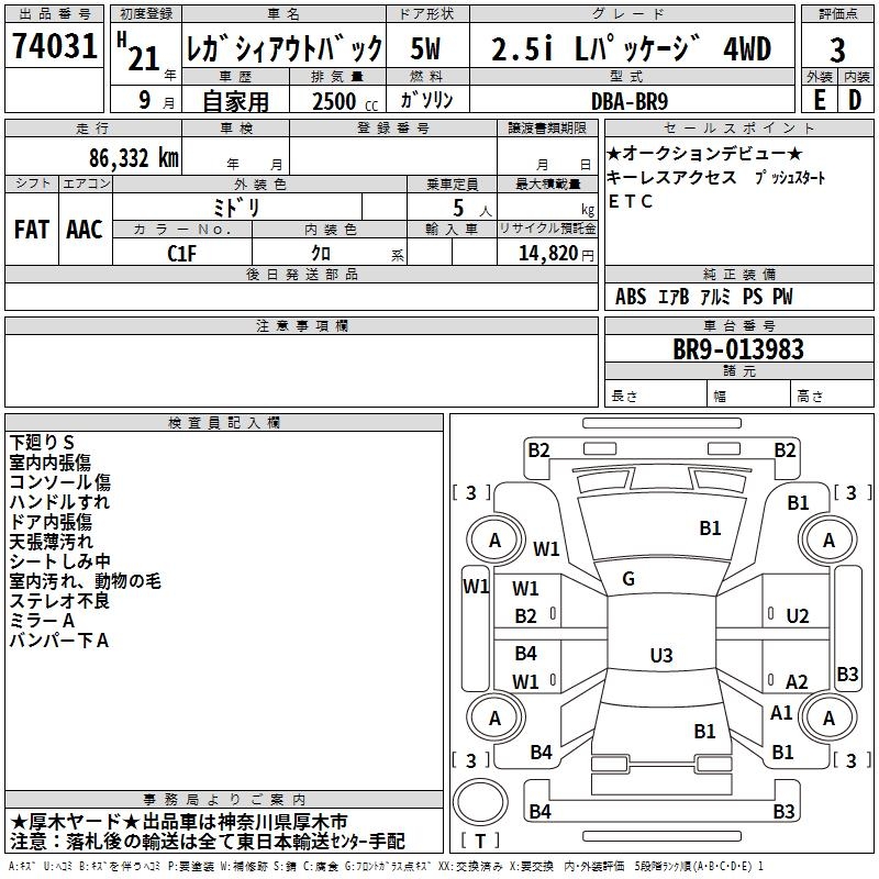 SUBARU OUTBACK - лот 74031