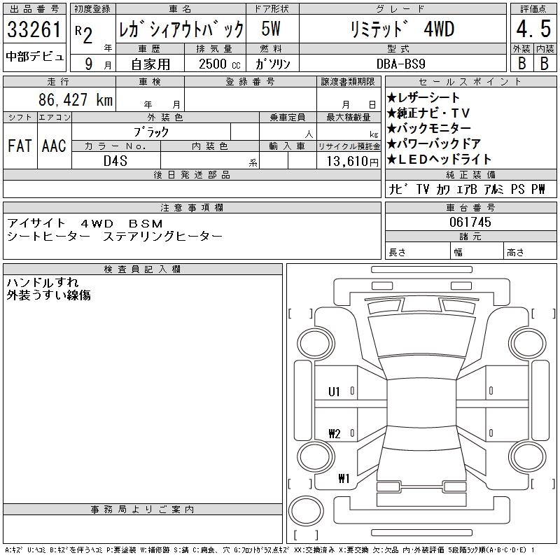 SUBARU OUTBACK - лот 33261