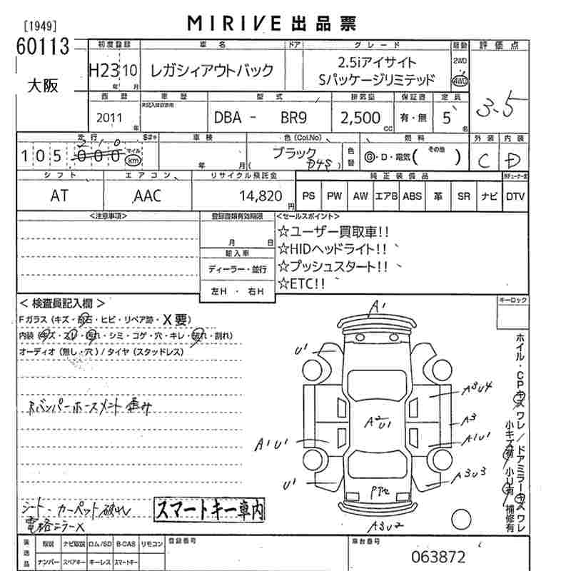 SUBARU OUTBACK - лот 60113