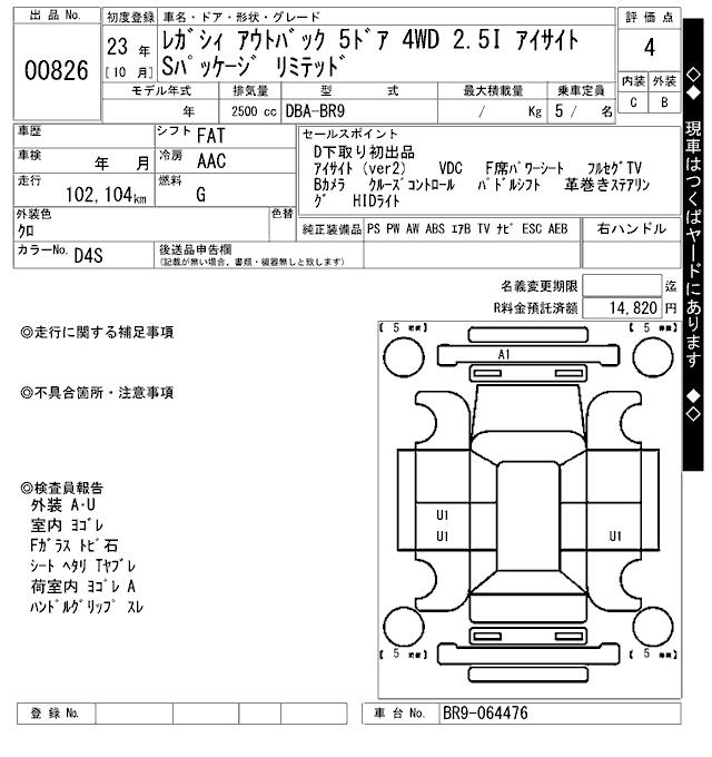 SUBARU OUTBACK - лот 826