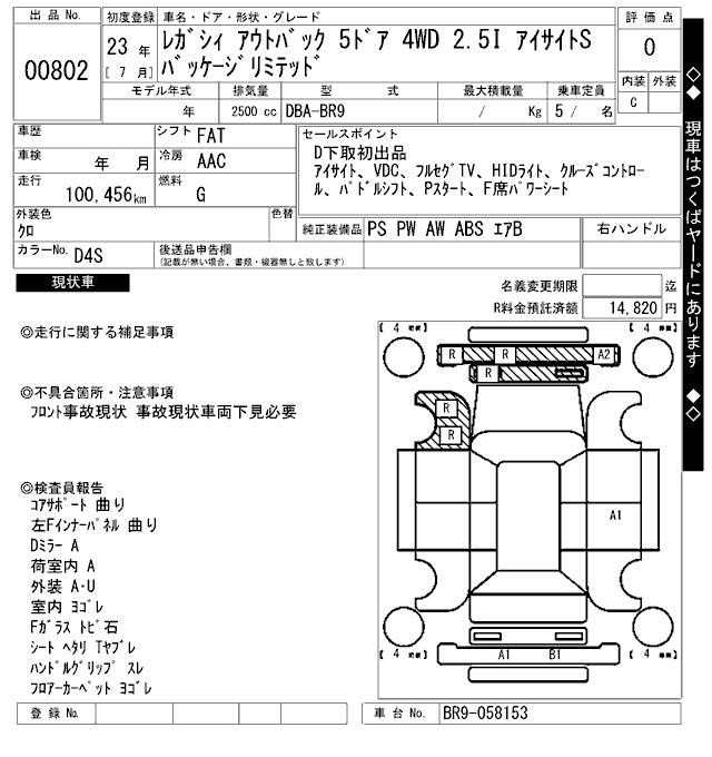 SUBARU OUTBACK - лот 802