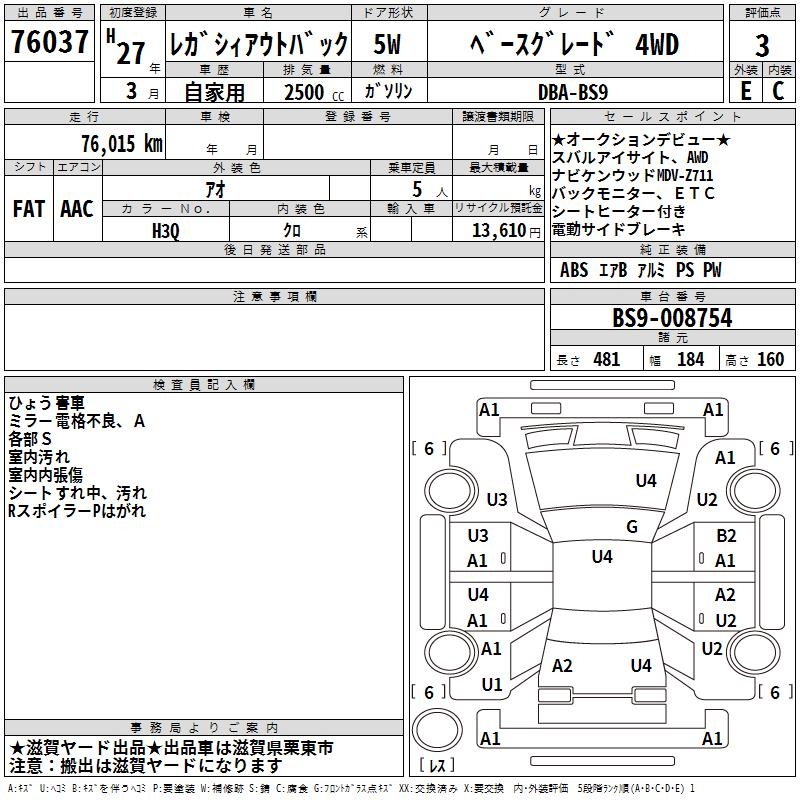 SUBARU OUTBACK - лот 76037