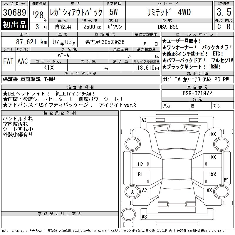 SUBARU OUTBACK - лот 30689