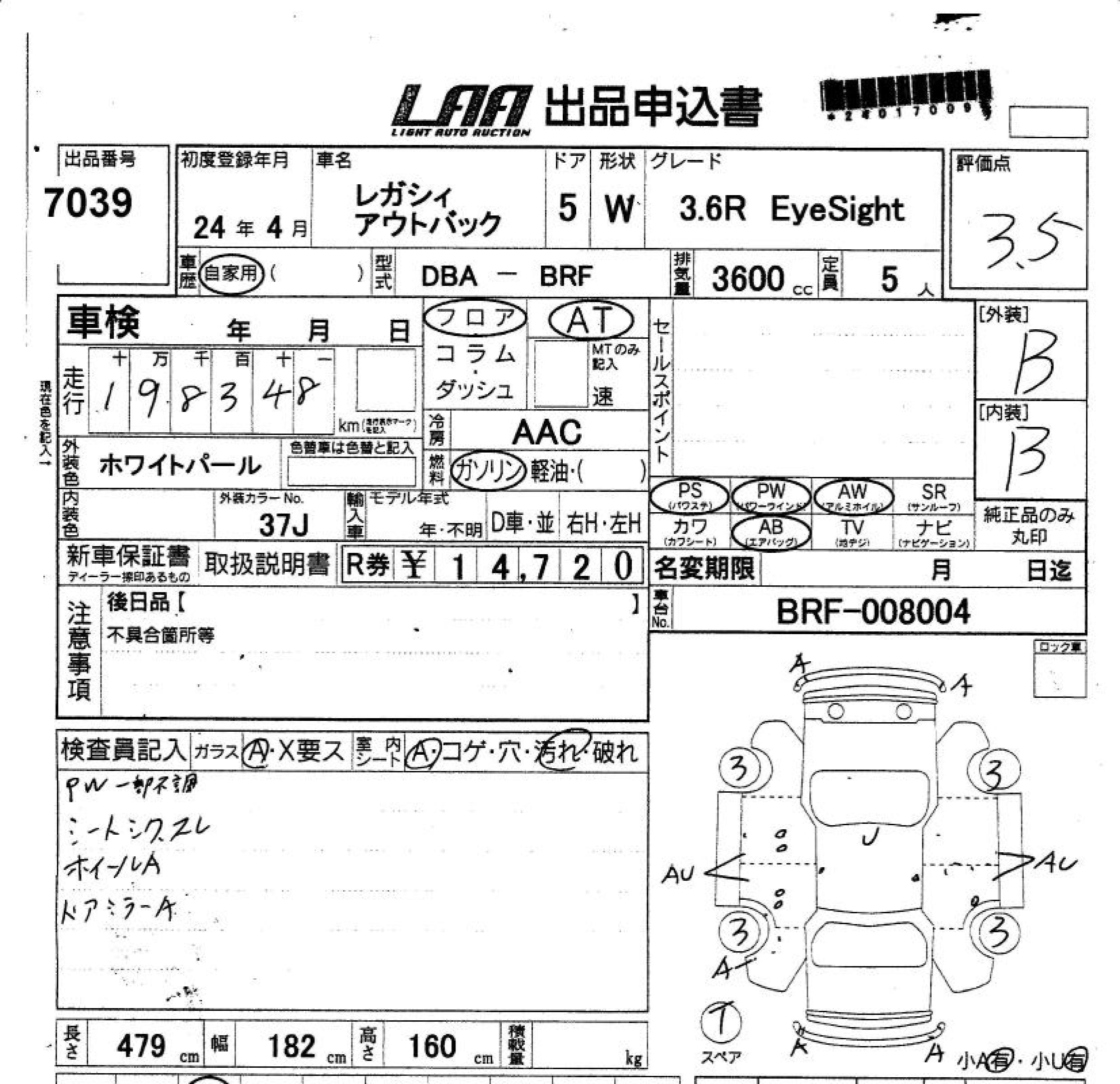SUBARU OUTBACK - лот 7039