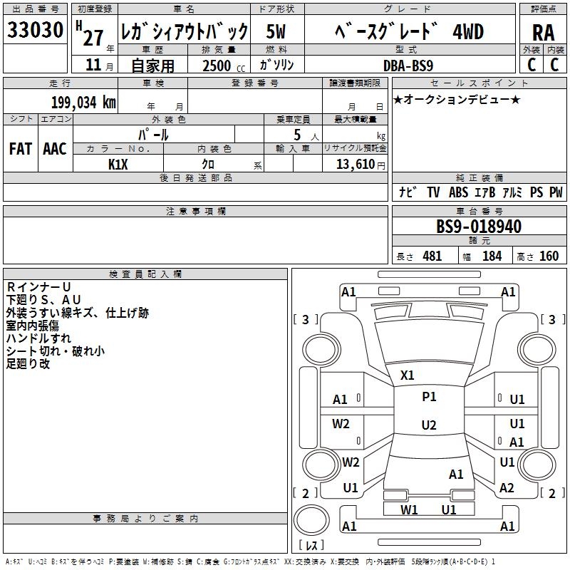 SUBARU OUTBACK - лот 33030
