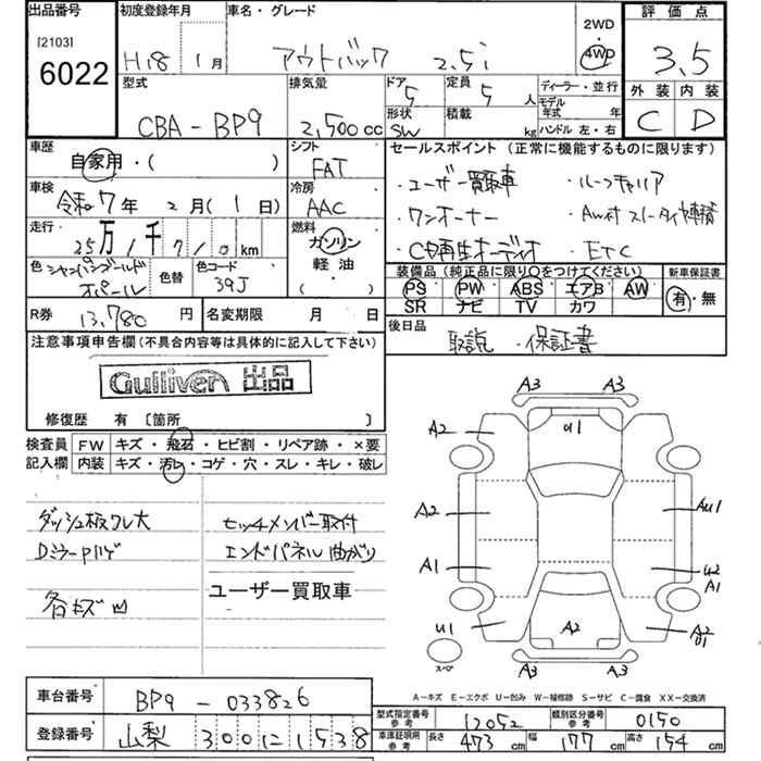 SUBARU OUTBACK - лот 6022