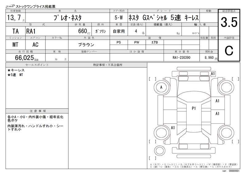 SUBARU PLEO NESTA - лот 18617