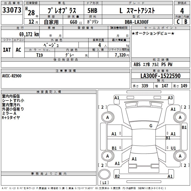 SUBARU PLEO PLUS L SMART ASSIST - лот 33073