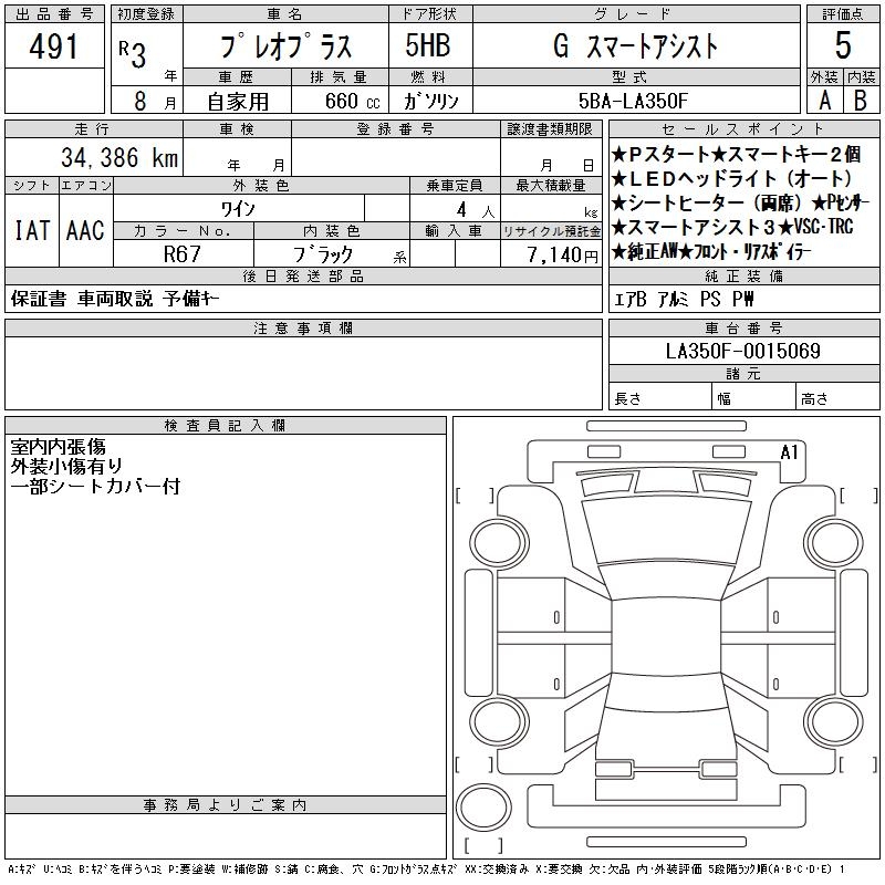 SUBARU PLEO PLUS G SMART ASSIST - лот 491