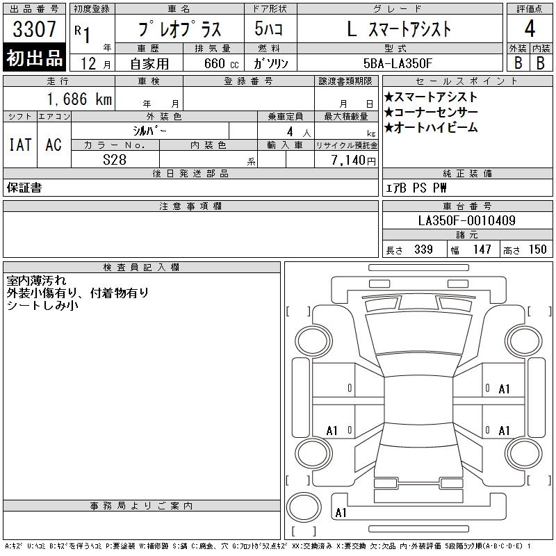 SUBARU PLEO PLUS L SMART ASSIST - лот 3307