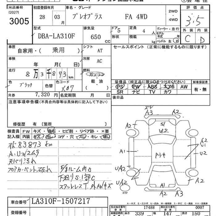 SUBARU PLEO PLUS 4WD FA - лот 3005