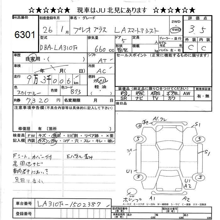 SUBARU PLEO PLUS 4WD LA SMART ASSIST - лот 6301