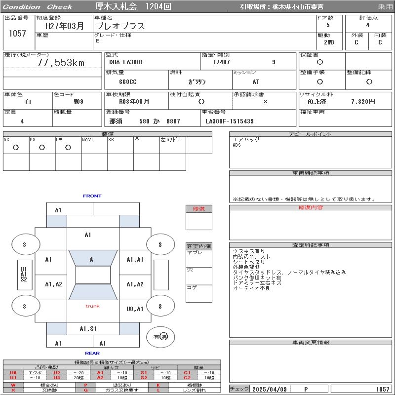 SUBARU PLEO PLUS E - лот 1057