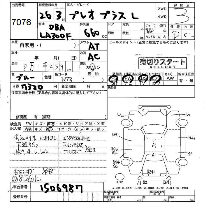 SUBARU PLEO PLUS L - лот 7076
