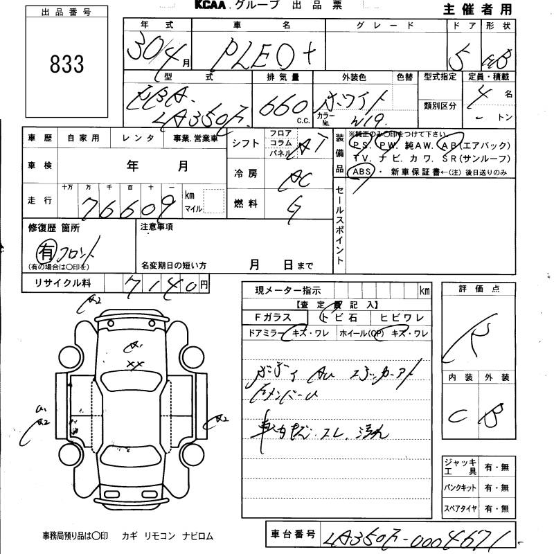 SUBARU PLEO PLUS - лот 833