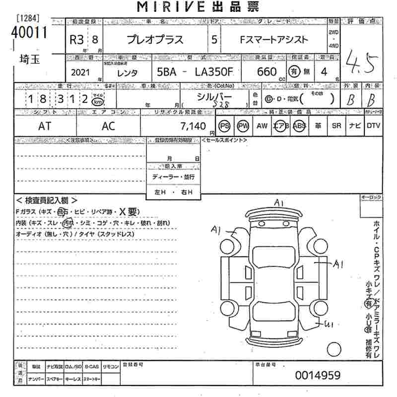 SUBARU PLEO PLUS F SMART ASSIST - лот 40011