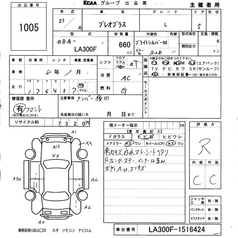 SUBARU PLEO PLUS L - лот 1005