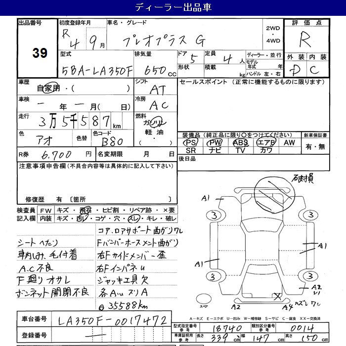 SUBARU PLEO PLUS G - лот 39