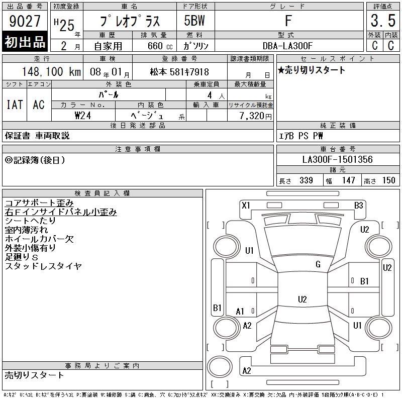 SUBARU PLEO PLUS F - лот 9027