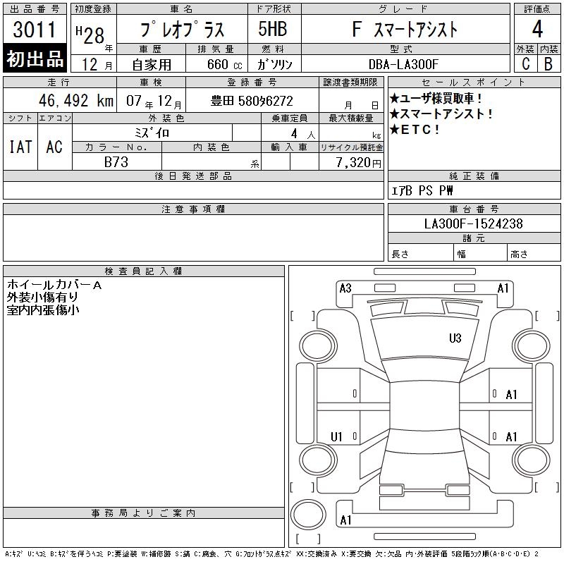 SUBARU PLEO PLUS F SMART ASSIST - лот 3011