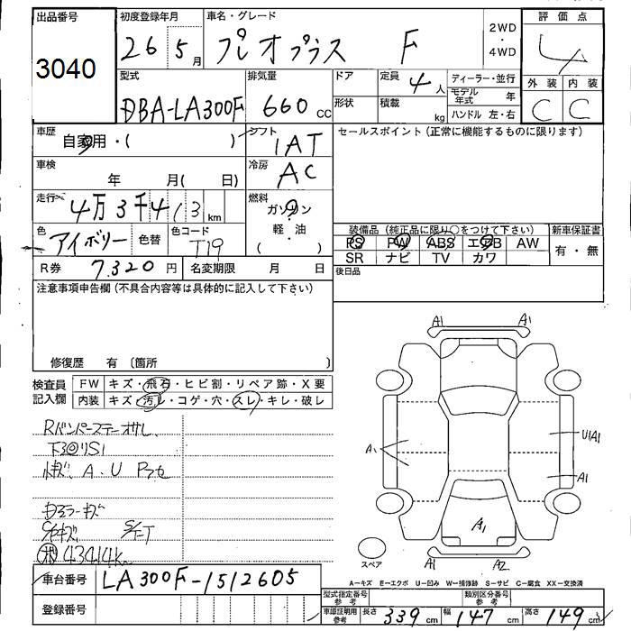 SUBARU PLEO PLUS F - лот 3040