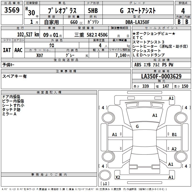 SUBARU PLEO PLUS G SMART ASSIST - лот 3569