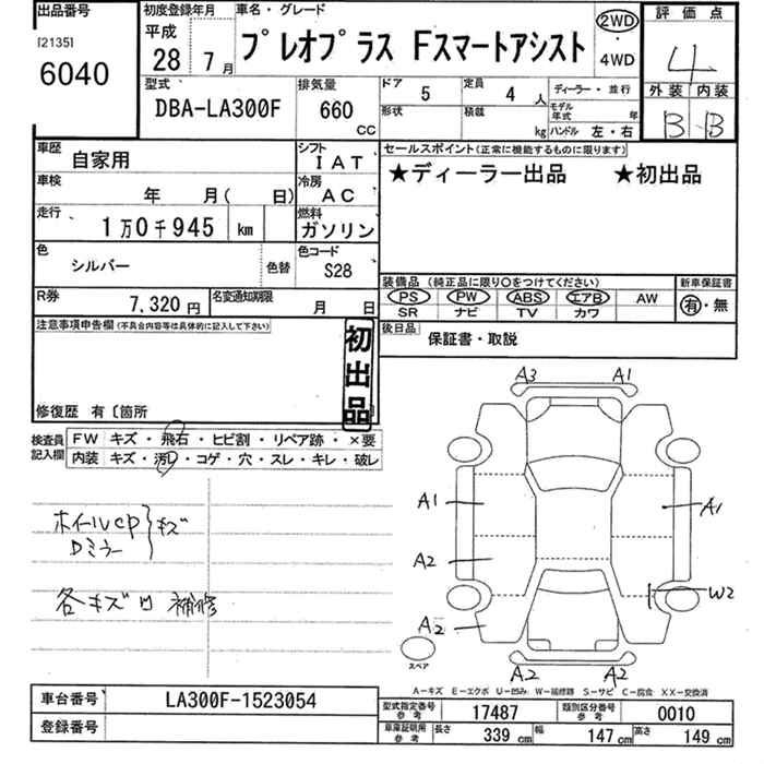 SUBARU PLEO PLUS F SMART ASSIST - лот 6040