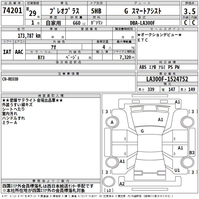 SUBARU PLEO PLUS G SMART ASSIST - лот 74201