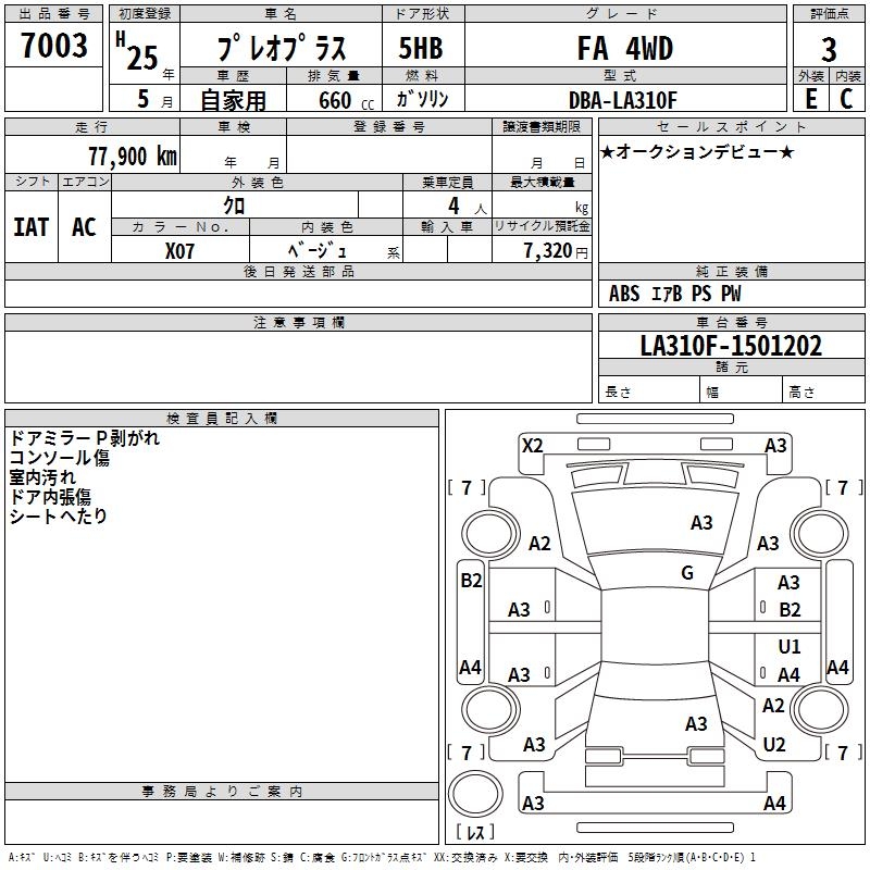SUBARU PLEO PLUS FA 4WD - лот 7003