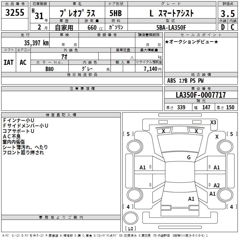 SUBARU PLEO PLUS L SMART ASSIST - лот 3255
