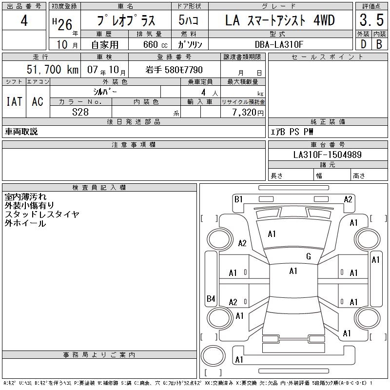 SUBARU PLEO PLUS - лот 4