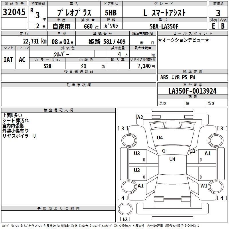 SUBARU PLEO PLUS - лот 32045