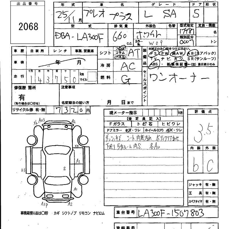 SUBARU PLEO PLUS - лот 2068