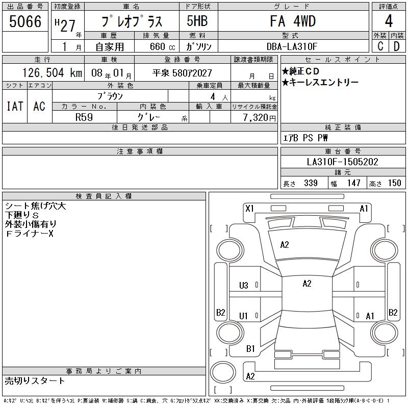 SUBARU PLEO PLUS - лот 5066