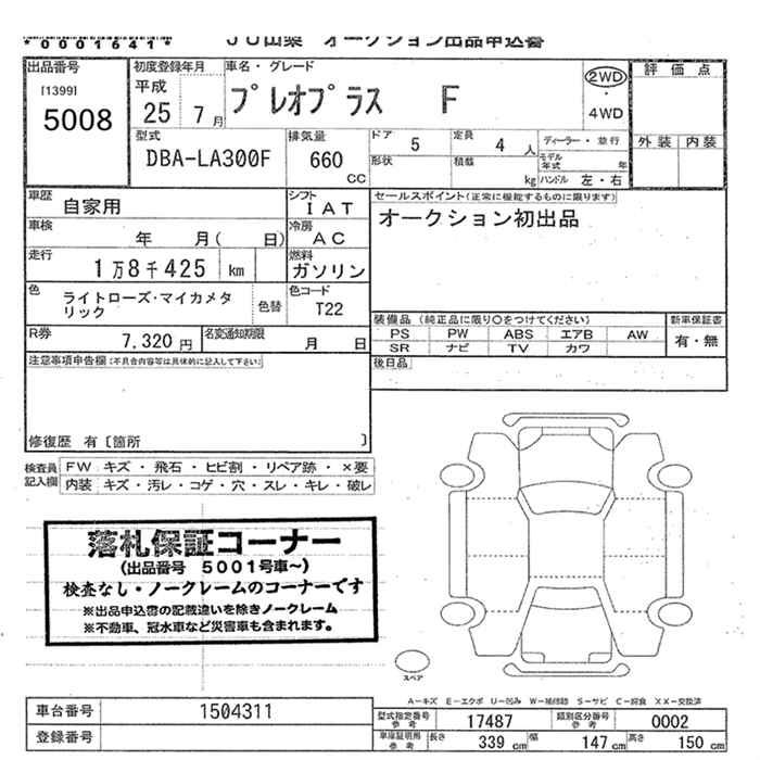 SUBARU PLEO PLUS F - лот 5008
