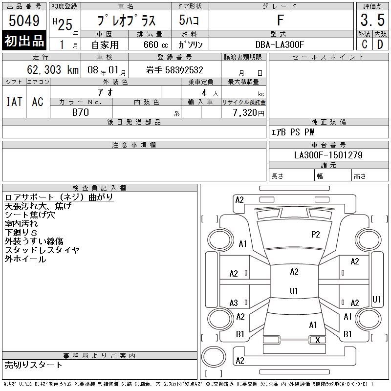 SUBARU PLEO PLUS F - лот 5049