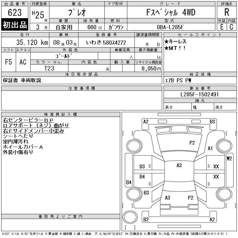 SUBARU PLEO F SPECIAL 4WD - лот 623