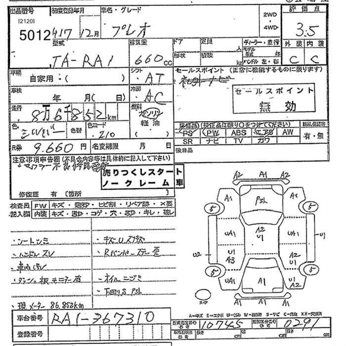 Все аукционы SUBARU PLEO