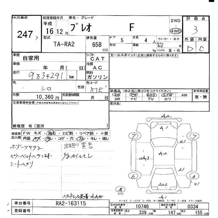 SUBARU PLEO 4WD F - лот 247