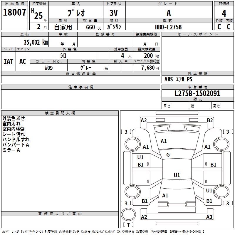 SUBARU PLEO A - лот 18007