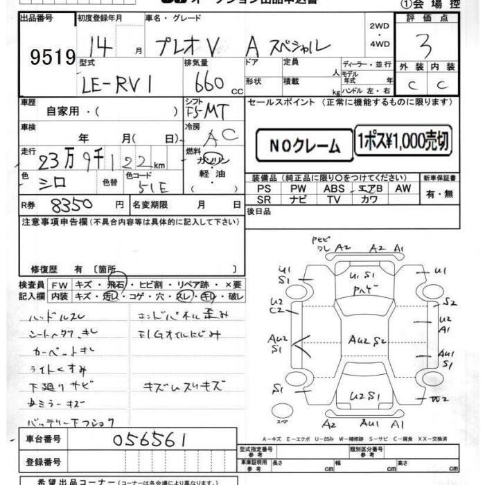 SUBARU PLEO A SPECIAL - лот 9519