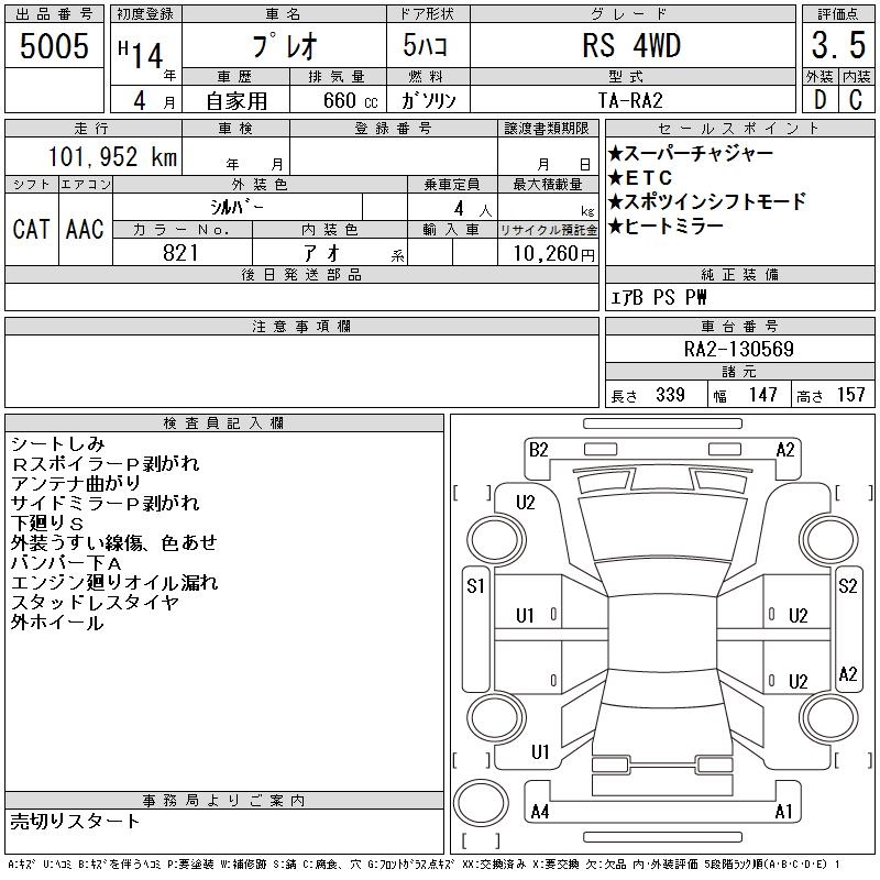 SUBARU PLEO RS 4WD - лот 5005