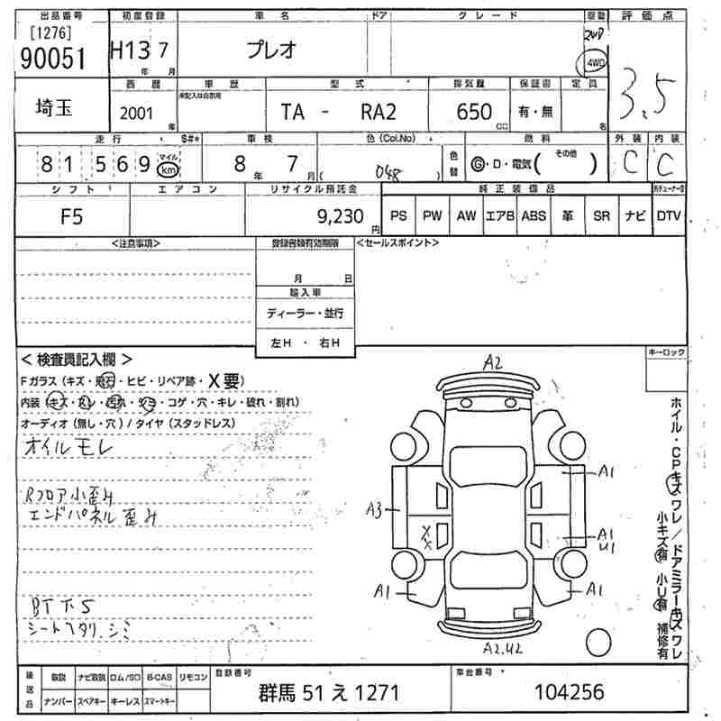 SUBARU PLEO - лот 90051