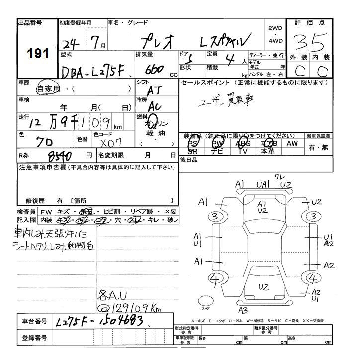 Все аукционы SUBARU PLEO