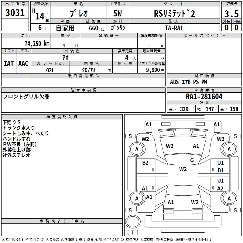 SUBARU PLEO RS LIMITED 2 - лот 3031